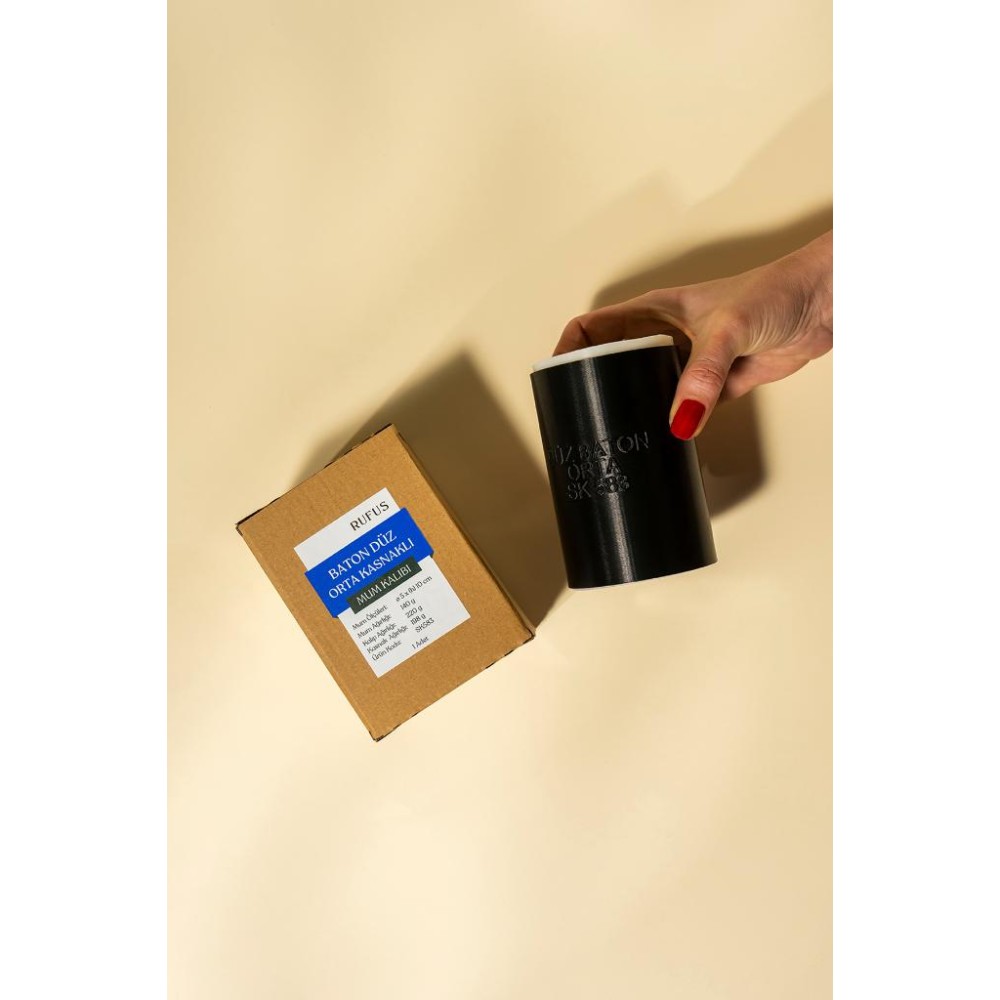 Bir dökümde görsellerde görmüş olduğunuz formda 1 adet orta boyut baton düz yüzeyli mum elde edebilirsiniz.