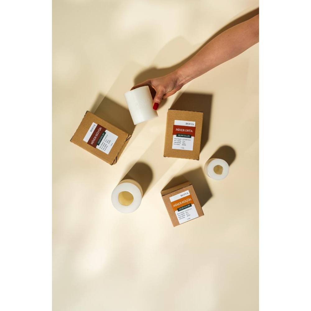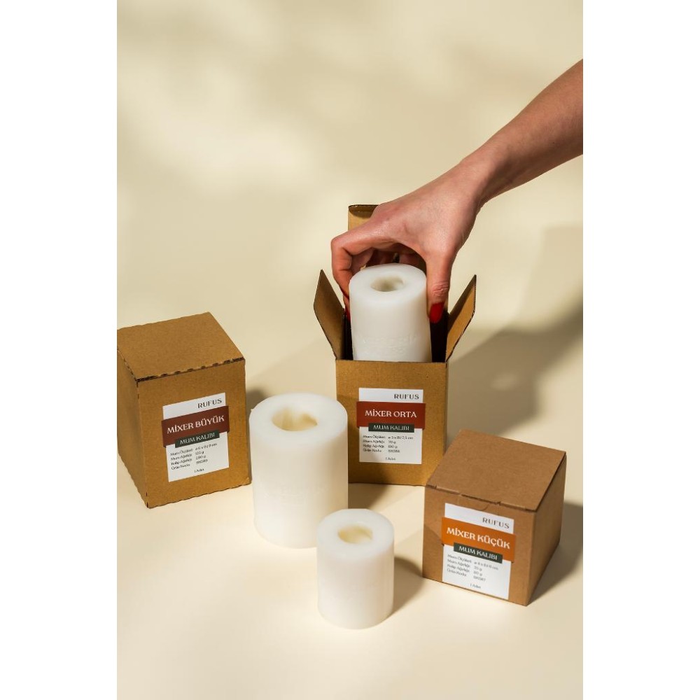 Bir dökümde 3 adet kalıptan mixer formunda büyük, orta ve küçük boyutlarda geometrik 3 adet mum elde edebilirsiniz.