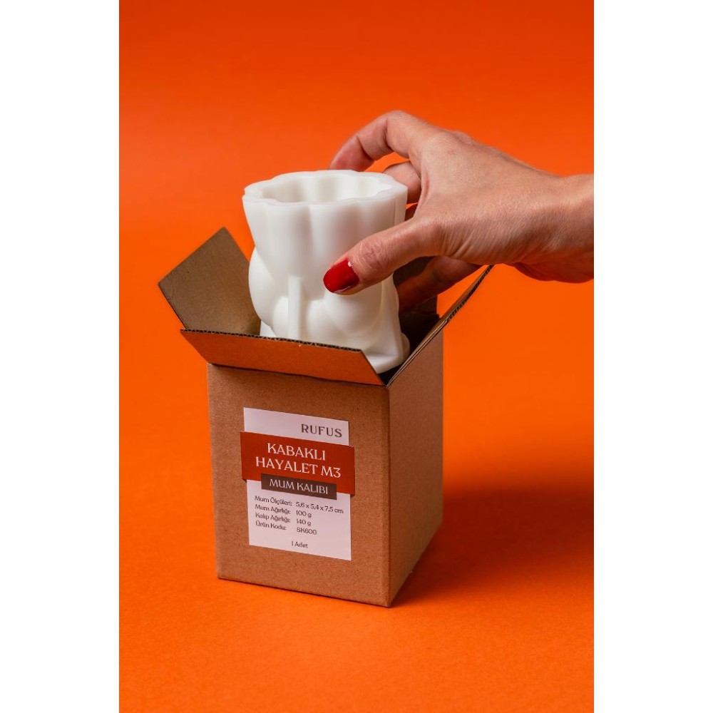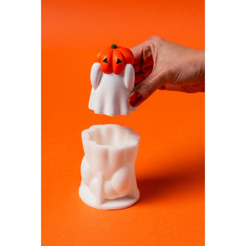 Bir dökümde 1 adet kafası kabak formunda hayalet şeklinde mum elde edebilirsiniz.