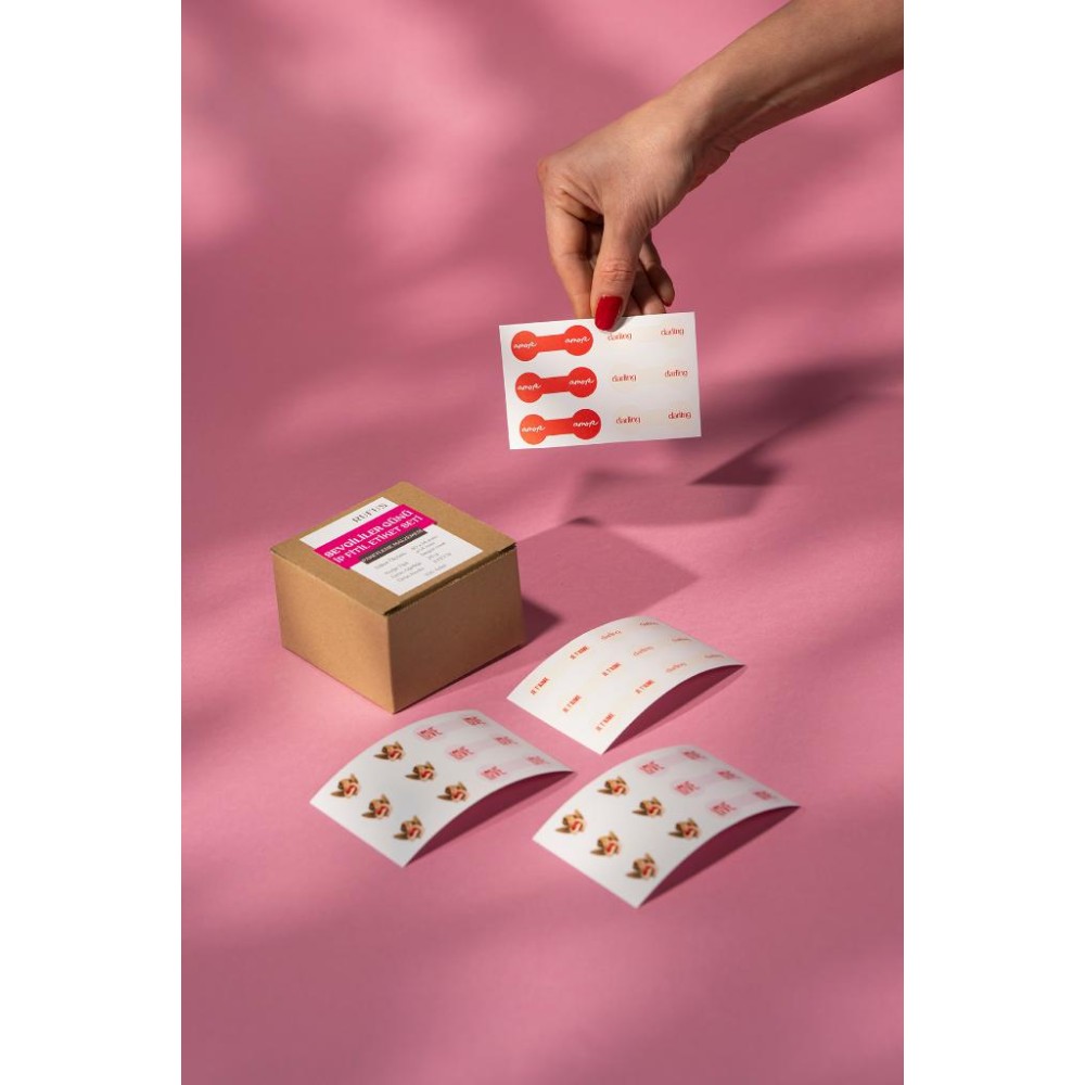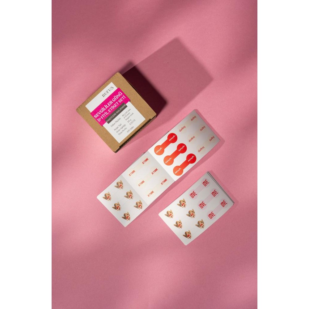 Etiketler sevgililer günü teması düşünülerek tasarlanmıştır.