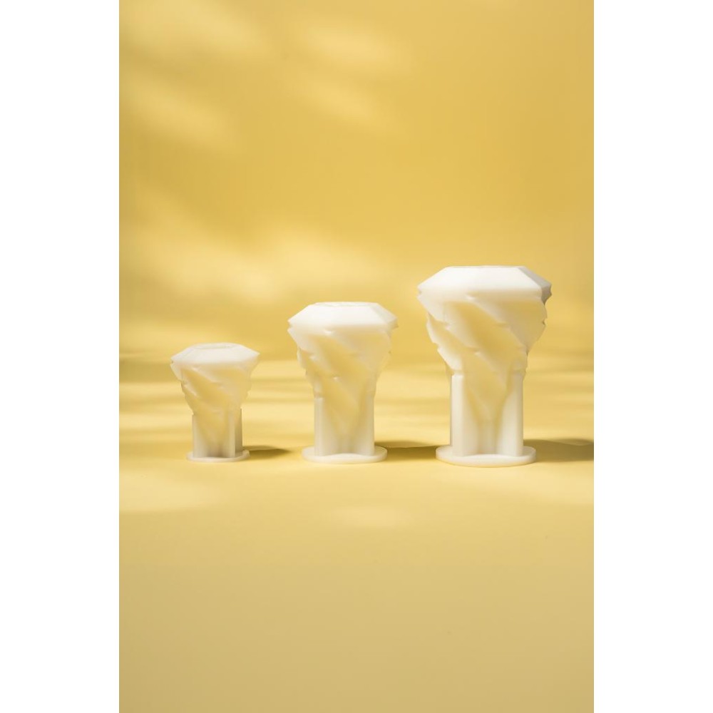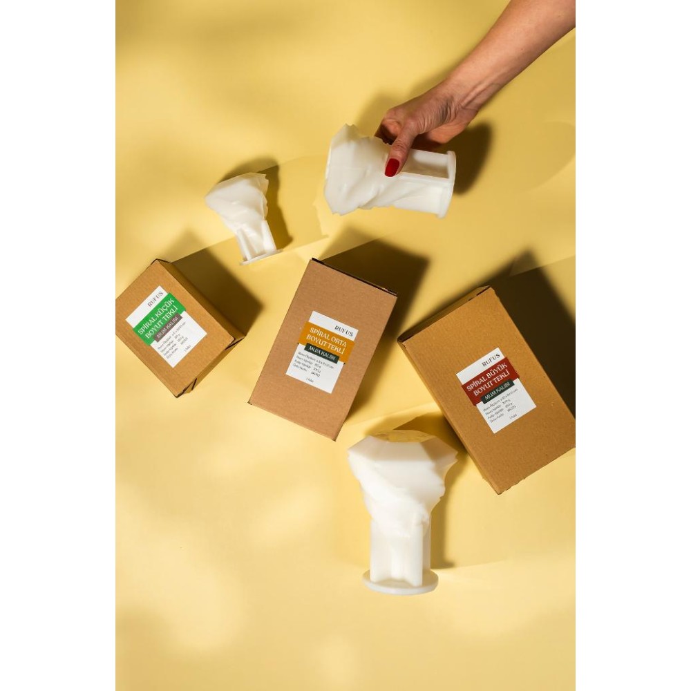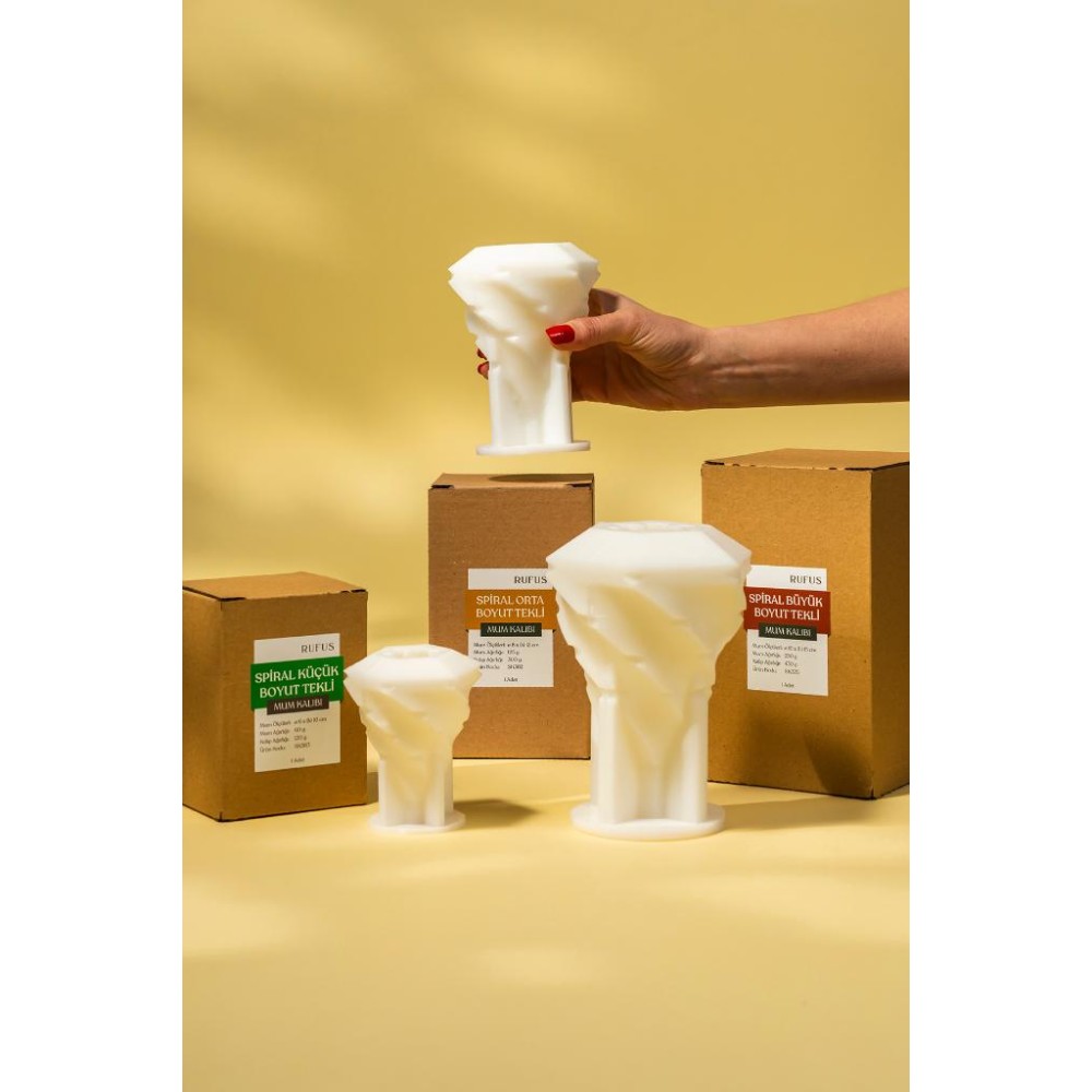 Bir dökümde 3 adet kalıptan 3 farklı boyutta spiral şeklinde mum elde edebilirsiniz.