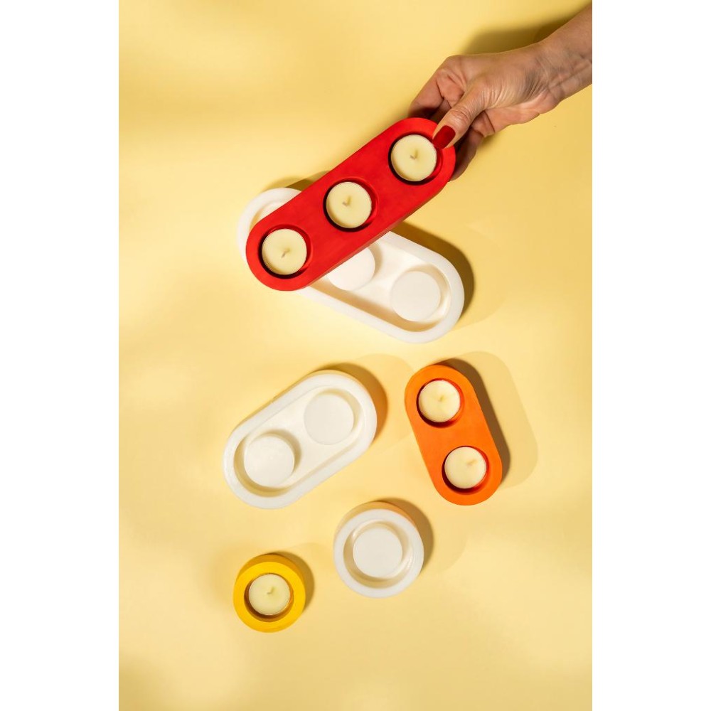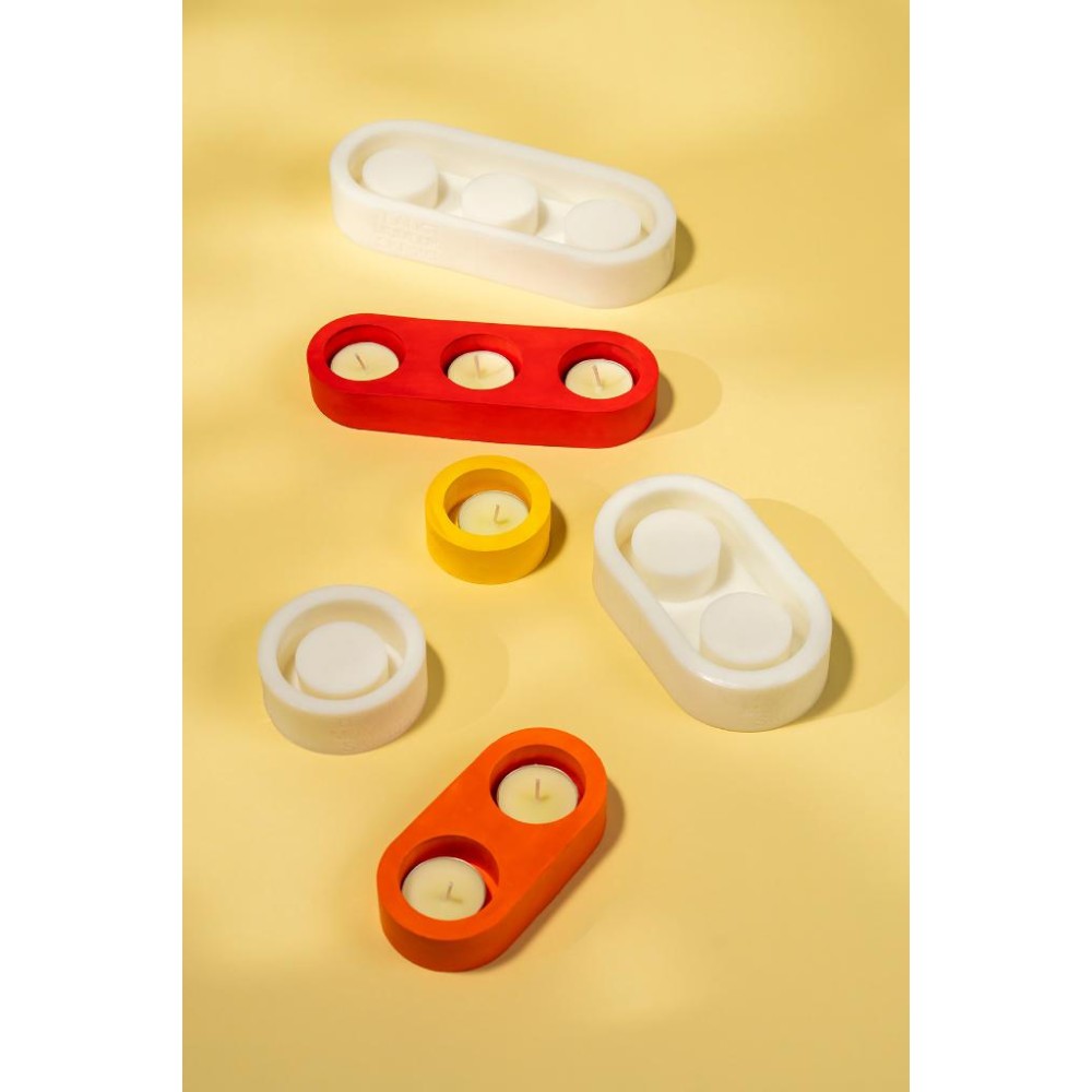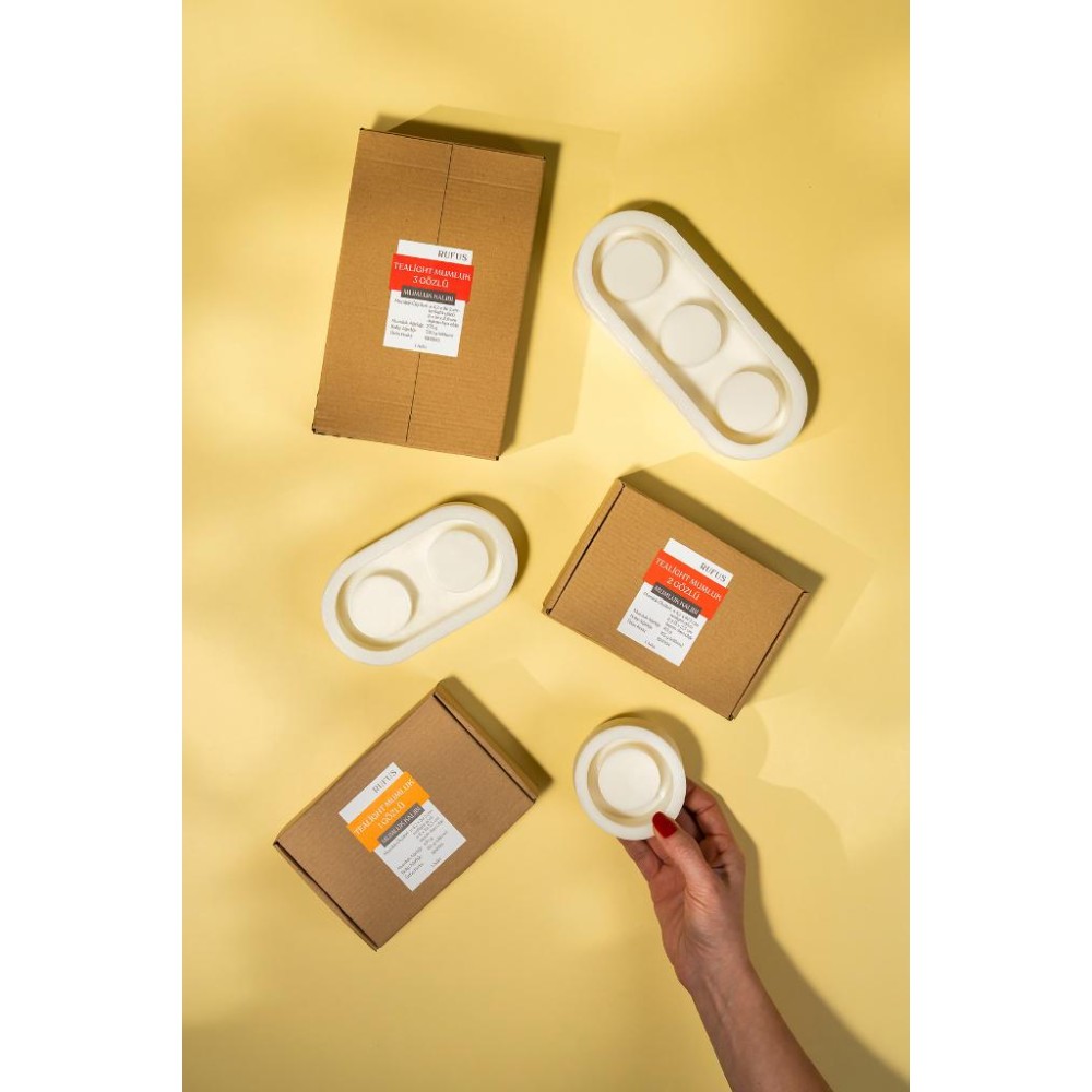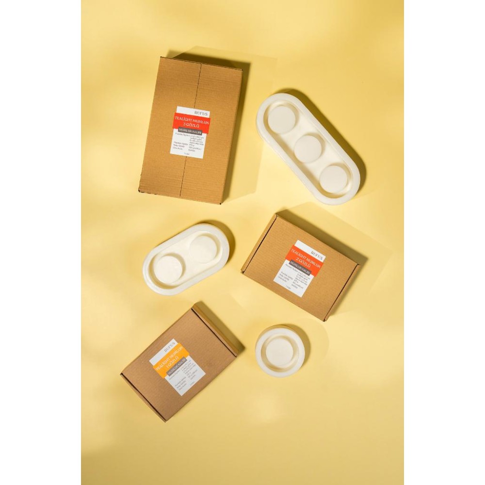 Bir dökümde 3 adet kalıptan görsellerde görmüş olduğunuz formda 1-2 ve 3 gözlü 3 adet tealight mumluk elde edebilirsiniz.